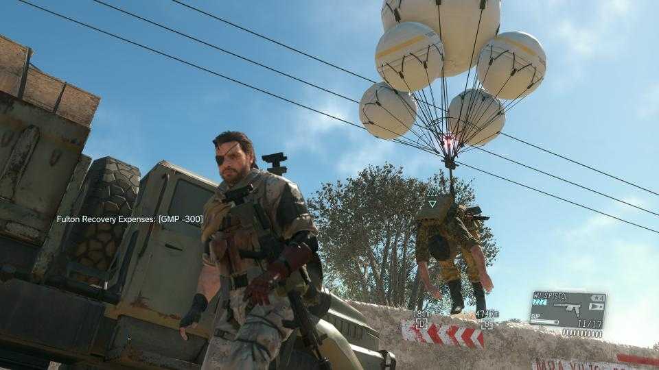 The non-lethal approach makes a lot more sense, though, as you’re reliant on captured enemy soldiers to build up your home base and unlock new development options. It’s hilarious to attach a Fulton balloon (which floats up into the sky to be retrieved by a cargo plane) to an unsuspecting enemy (and even more so to a sheep or armoured car) but it becomes a vital way to upgrade Big Boss’s skills and inventory. You can extend your home base, adding extra platforms and decks to make room for more soldiers, and protect it with security cameras, electric fences and decoys, which are essential to keep your plundered raw materials and workers safe from other players in multiplayer mode. The multiplayer component is a brilliant addition, with the ability to invade other players’ bases in an attempt to steal resources, but doing so makes you a target for retaliation later. It’s entirely optional, too, so you can stick to offline mode if you prefer.